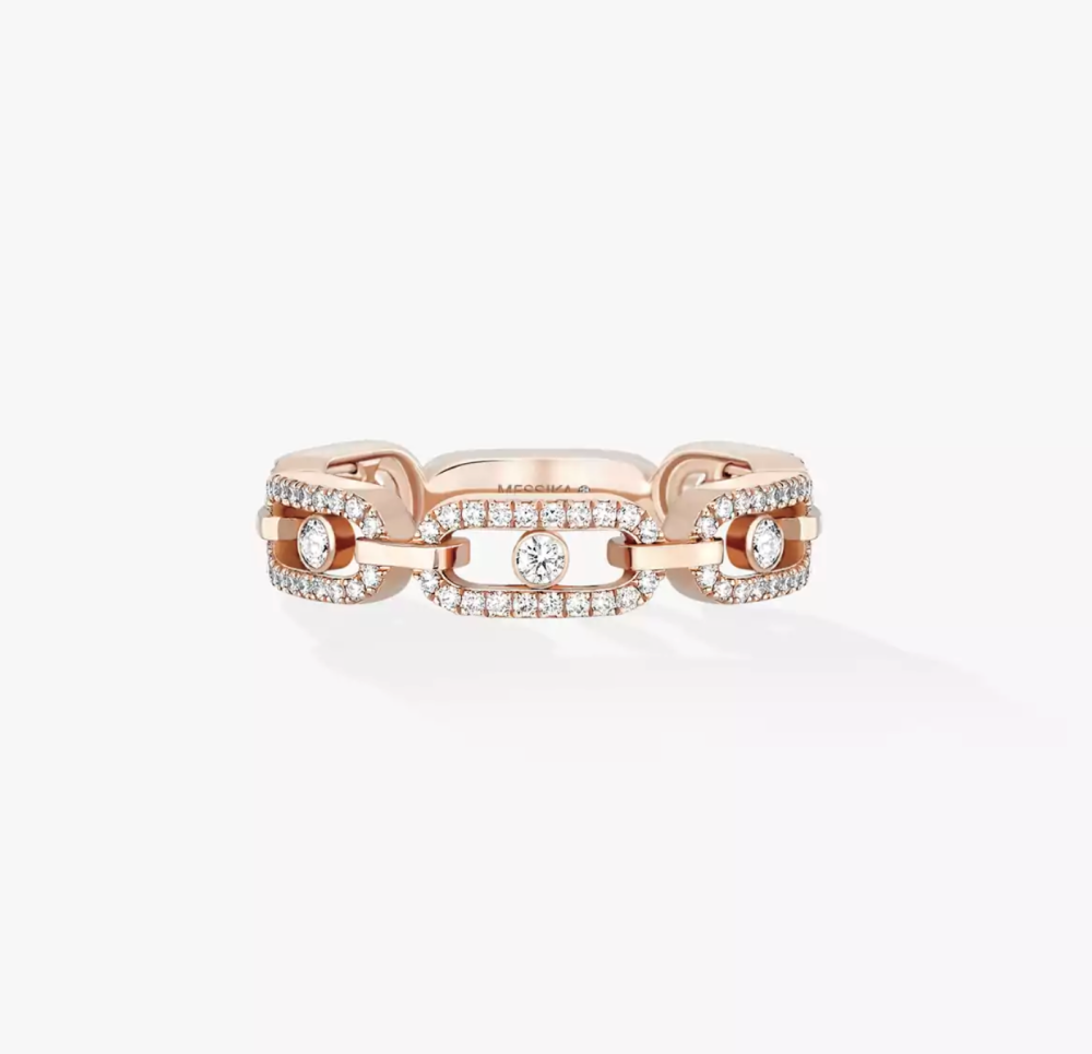 تتميّز مجموعة Move الشهيرة من ميسيكا بتصميمها العصري ودائم التألق في آن واحد. ويتمثل مفهومها في قفص ذهبي رفيع يحتضن بداخله ماسة ترقص على إيقاع تحركاتكم! ويبعث على المرح ويبدو جذّابًا في خاتم Move Link المرصوف المتعدّد الذي أُضيف حديثًا إلى المجموعة. وألهم تصميم سوار السلسلة ومجموعة الماسات المرصّعة المتنوّعة والمتلألئة حلقات Uno التي تلتف حول الإصبع بأسلوب مثير للأحاسيس. ويمكن ارتداء هذه الجوهرة الفاخرة كخاتم زواج أو خاتم كلاسيكي بمفرده أو مع غيره من مجوهرات مجموعتكم الشخصية.