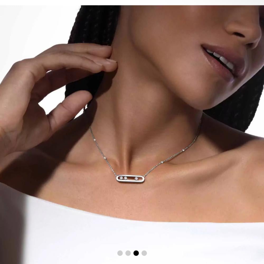 تتوفّر قلادة Move Classique من الذهب المرصع بالماس بنسخ من الذهب الأبيض أو الذهب الأصفر أو الذهب الأسود عند الطلب